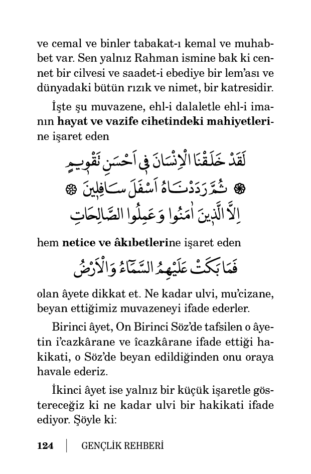 Birinci âyet, On Birinci Söz’de tafsilen o âyetin i’cazkârane ve îcazkârane ifade ettiği hakikati, o Söz’de beyan edildiğinden onu oraya havale ederiz.