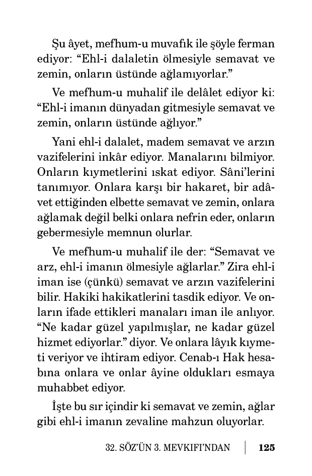 İşte şu muvazene, ehl-i dalaletle ehl-i imanın hayat ve vazife cihetindeki mahiyetlerine işaret eden