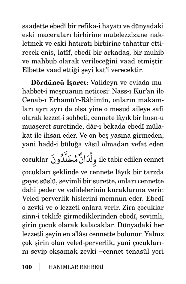 olmadığından– cennette yoktur, zannedilirdi. İşte bu surette o dahi vardır. Hem en zevkli ve en şirin bir tarzda vardır. İşte kable’l-büluğ evladı vefat edenlere müjde…