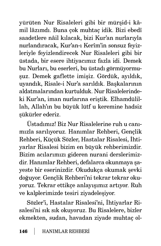 Üstadımız! Nur Risalelerindeki iman nurları, birer gül-ü Muhammedî aleyhissalâtü vesselâm gibidir. Biz, bu eserlerinizin bize ne kadar faydalı olduğunu; ruhumuza, kalbimize ne derece tesirler verdiğini dile getirmekten âciziz.