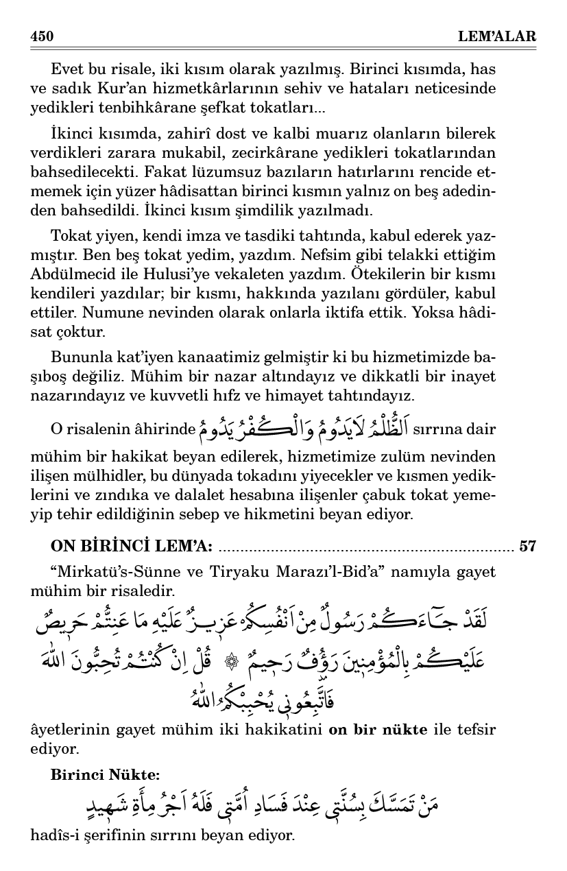 Evet bu risale, iki kısım olarak yazılmış. Birinci kısımda, has ve sadık Kur’an hizmetkârlarının sehiv ve hataları neticesinde yedikleri tenbihkârane şefkat tokatları...