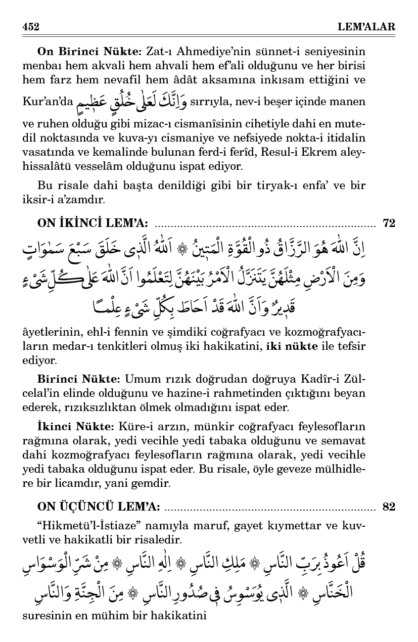 “Hikmetü’l-İstiaze” namıyla maruf, gayet kıymettar ve kuvvetli ve hakikatli bir risaledir.