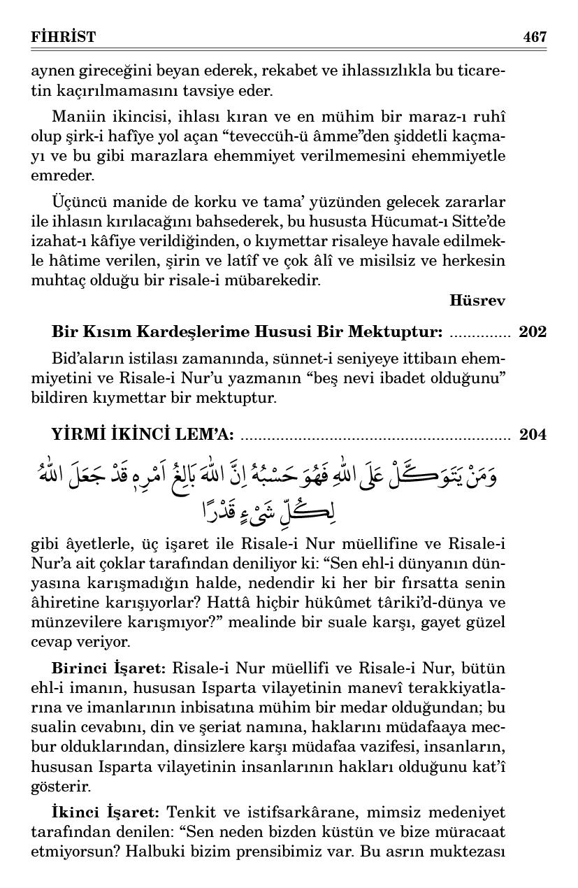 Ve ihlası kuvvetlendiren bir vasıtanın “rabıta-i mevt” olduğunu ve zedeleyen sebeplerin “riya ve tûl-i emel” gibi merdud hasletler olduğunu bildirir.