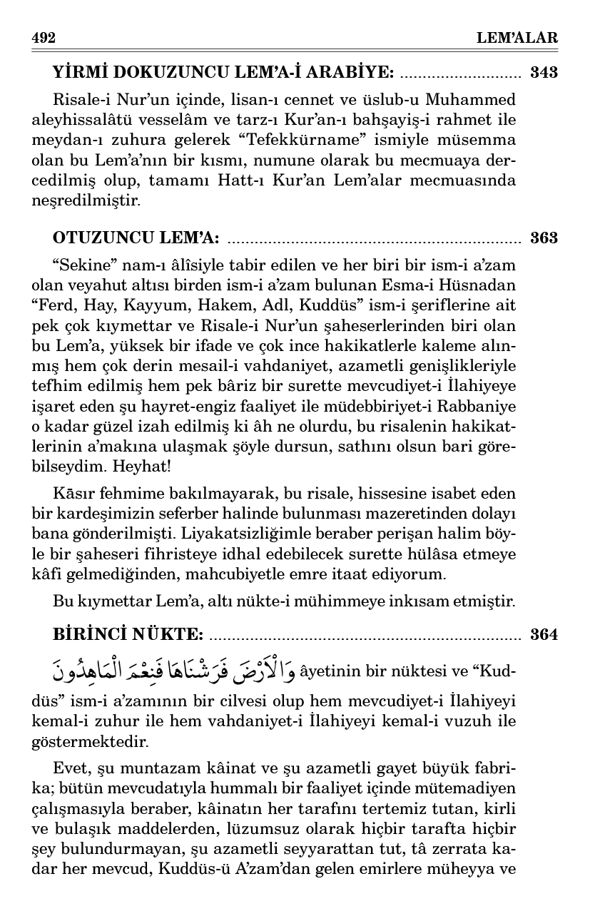 YİRMİ DOKUZUNCU LEM’A-İ ARABİYE: 284