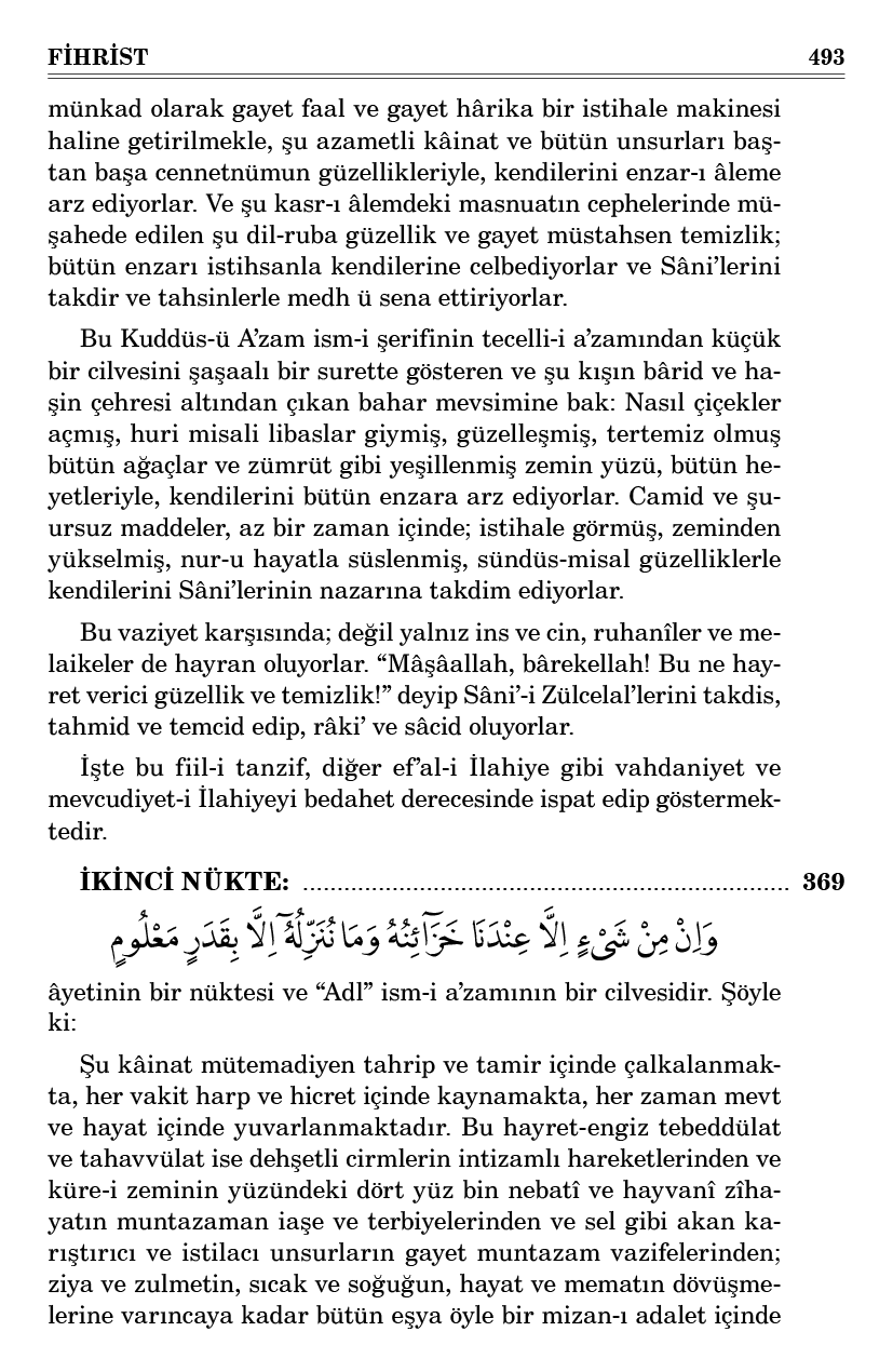 Evet, şu muntazam kâinat ve şu azametli gayet büyük fabrika; bütün mevcudatıyla hummalı bir faaliyet içinde mütemadiyen çalışmasıyla beraber, kâinatın her tarafını tertemiz tutan, kirli ve bulaşık maddelerden, lüzumsuz olarak hiçbir tarafta hiçbir şey bulundurmayan, şu azametli seyyarattan tut, tâ zerrata kadar her mevcud, Kuddüs-ü A’zam’dan gelen emirlere müheyya ve