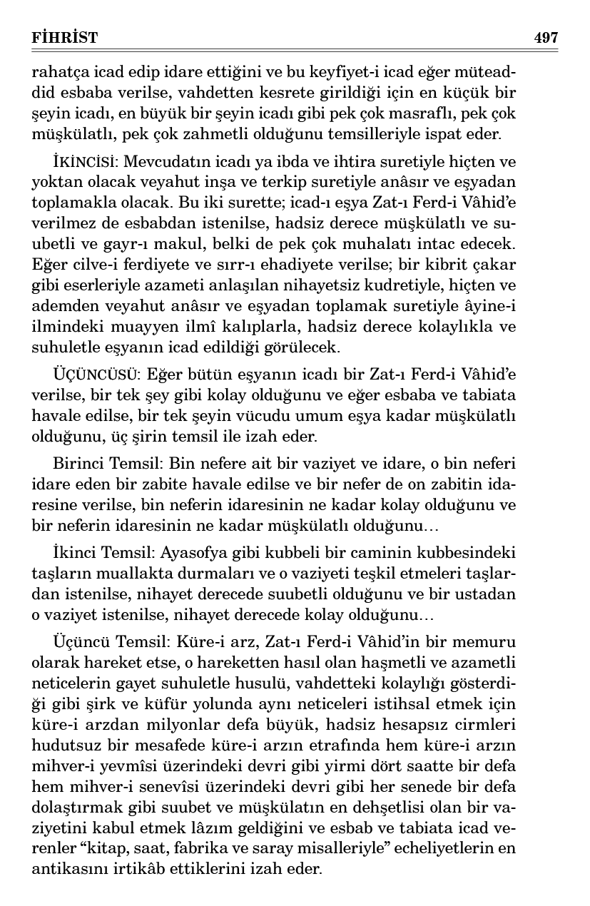 İkinci İşaret: İsm-i Ferd’in cilve-i vahdeti, kâinatın bütün envalarını ve unsurlarını öyle bir surette birbirine girift etmekle birbirinin içine almıştır ki mecmu-u kâinatı tecezzi kabul etmez bir küll hükmüne getirdiği ve çok birliklerle vahdaniyeti ilan ettiğini gösteriyor.