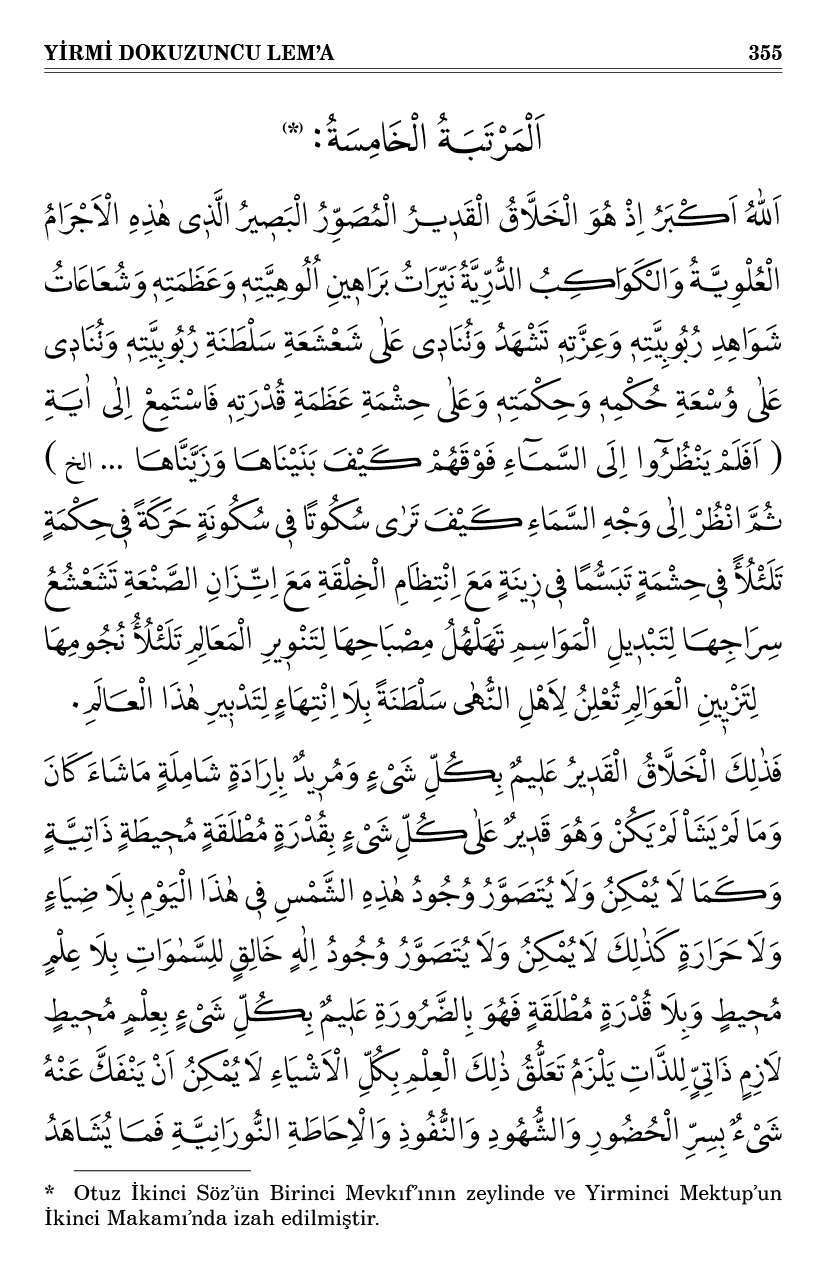 * Otuz İkinci Söz’ün Birinci Mevkıf’ının zeylinde ve Yirminci Mektub’un İkinci Makamı’nda izah edilmiştir.