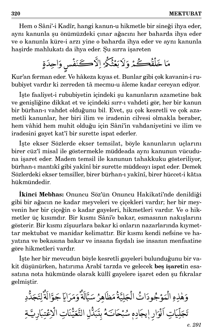 Kur’an ferman eder. Ve hâkeza kıyas et. Bunlar gibi çok kavanin-i rububiyet vardır ki zerreden tâ mecmu-u âleme kadar cereyan ediyor.