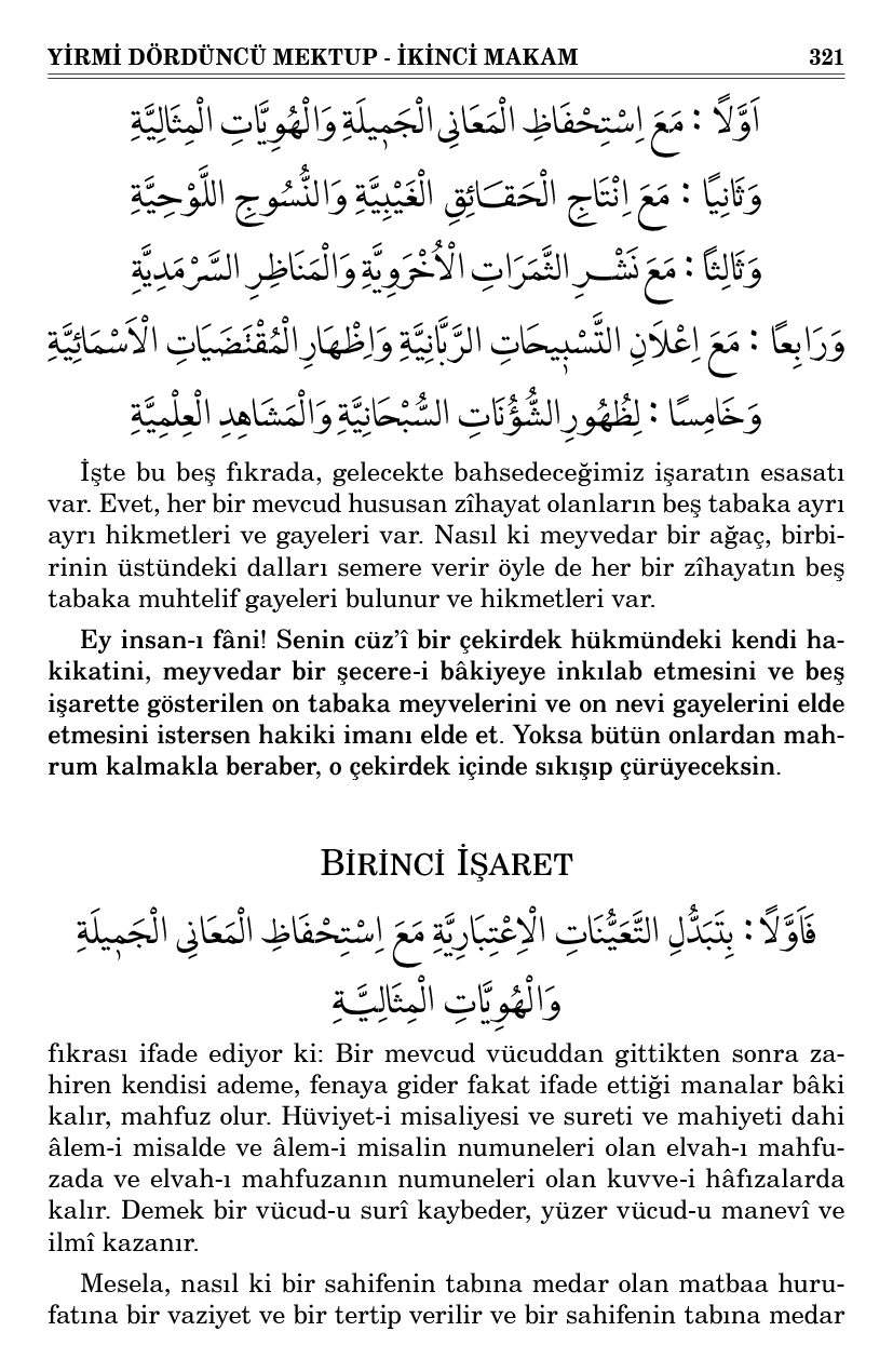 İşte her bir mevcudun böyle kesretli gayeleri bulunduğunu bir vakit düşünürken, hatırıma Arabî tarzda ve gelecek beş işaretin esasatına nota hükmünde olarak küllî gayelere işaret eden şu fıkralar gelmiştir.