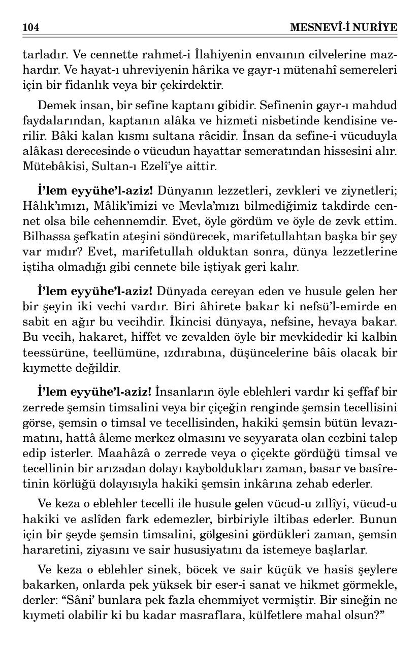 İ’lem eyyühe’l-aziz! Kur’an-ı Mu’cizü’l-Beyan, hakikatleri durub-u emsal ile beyan ediyor. Çünkü daire-i uluhiyete ait hakaik-i mücerrede, daire-i mümkinatta ancak misaller ile temessül ve tavazzuh eder. Mümkin ve miskin olan insan da daire-i imkânda misallere bakarak, fevkinde bulunan daire-i vücubun şuunatını, ahvalini düşünür.