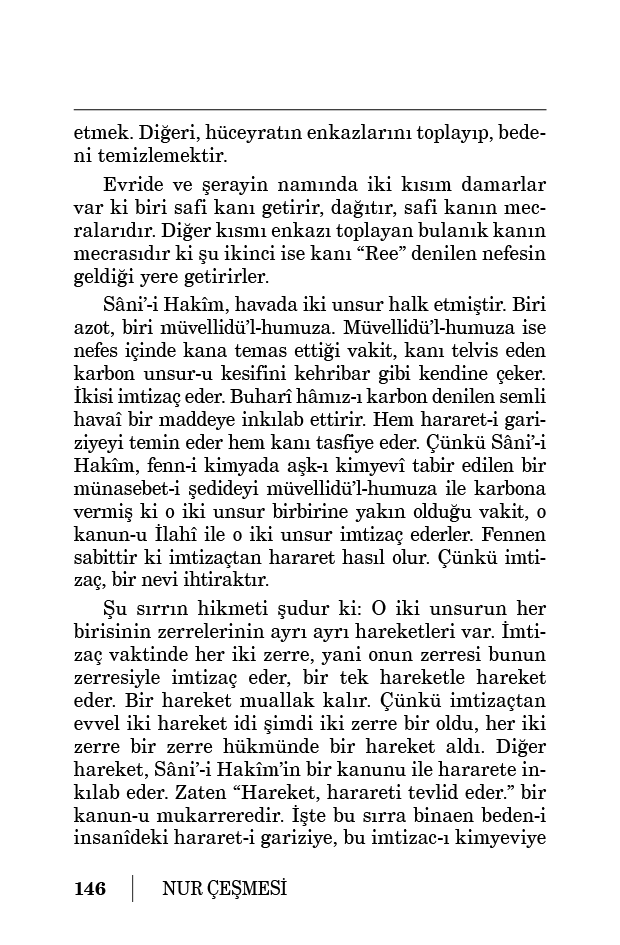 İşte nefes dâhile girdiği vakit, vücudun hem âb-ı hayatını temizliyor hem nâr-ı hayatı iş’al ediyor. Çıktığı vakit ağızda mu’cizat-ı kudret-i İlahiye olan kelime meyvelerini veriyor.