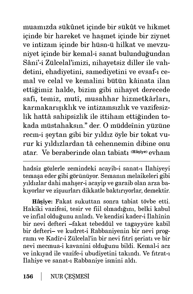 derelerine ve tesadüfü adem kuyusuna ve şerikleri, imtina ve muhaliyet zulümatına ve din aleyhindeki felsefeyi, esfel-i safilînin dibine atar. Bütün yıldızlarla beraber o yıldız