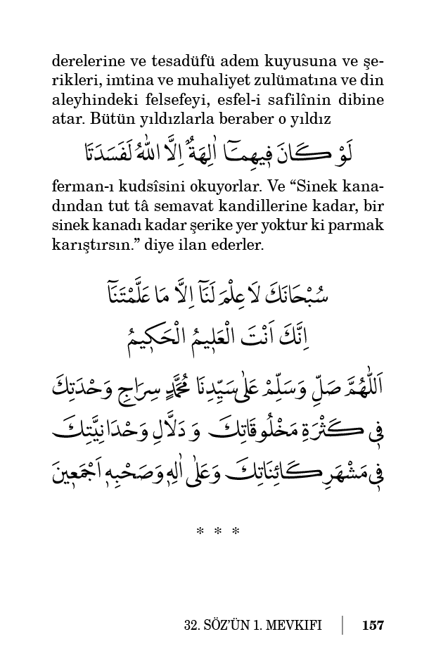ferman-ı kudsîsini okuyorlar. Ve “Sinek kanadından tut tâ semavat kandillerine kadar, bir sinek kanadı kadar şerike yer yoktur ki parmak karıştırsın.” diye ilan ederler.