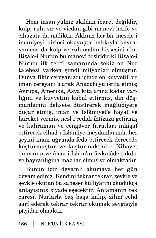 Bunun için Nur Risalelerinde Kur’an ve iman hakikatleri en berrak ve en mükemmel, en cazip ve en müessir bir tarzda izah ve ispat edilmiştir.