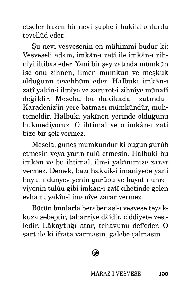 Halbuki tahayyül, tevehhüm, tasavvur, tefekkür; tasdik-i aklîden, iz’an-ı kalbîden ayrıdırlar, başkadırlar. Tahayyül, tevehhüm, tasavvur, tefekkür; şüphe ve tereddüt değildirler. Lâkin tekerrür edip istikrar peyda