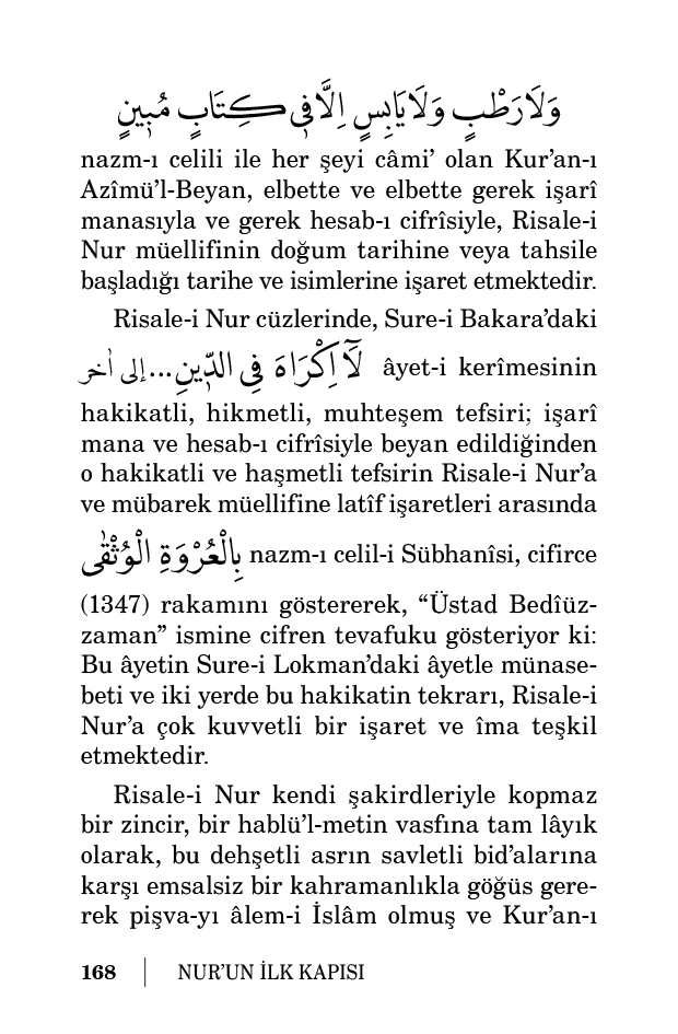 Bu kudsî âyetlerin tafsilatlı tefsiri Risale-i Nur Külliyatı’nda beyan edilmiş bulunduğundan, bu yüksek hakaiki ona havale ederek dersime hâtime veriyorum.