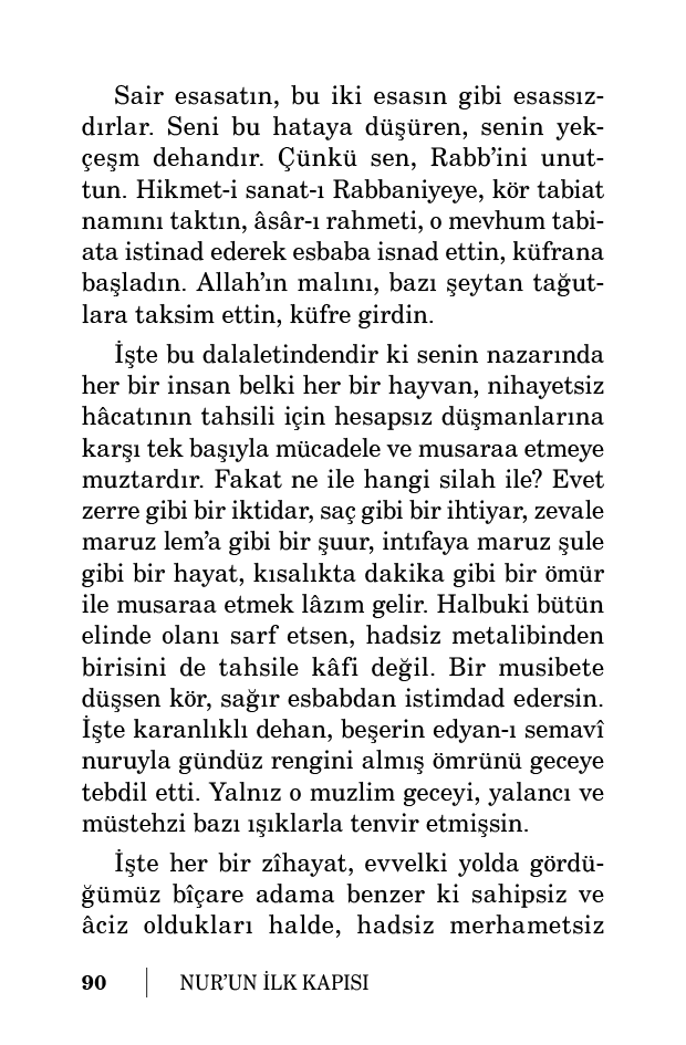 Kur’an’ın hâlis tilmizi ise abddir. Fakat a’zam-ı mahlukata da ibadete tenezzül etmez. Ve a’zam-ı menfaat olan cenneti gaye-i ibadet kabul etmez bir abd-i azizdir.