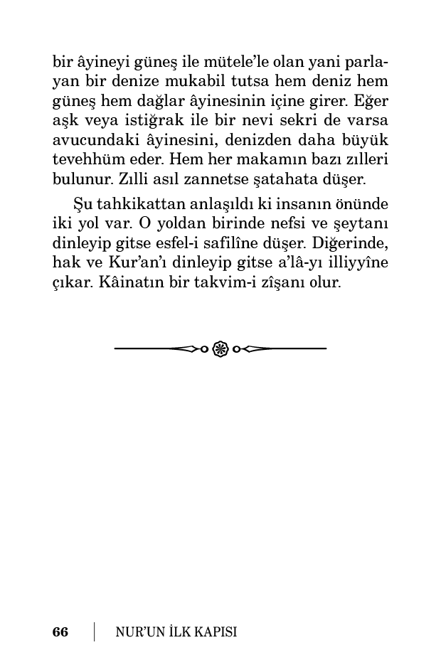 Şu âyetin hazinesinden bir cevherine temsil ile bir işarettir.