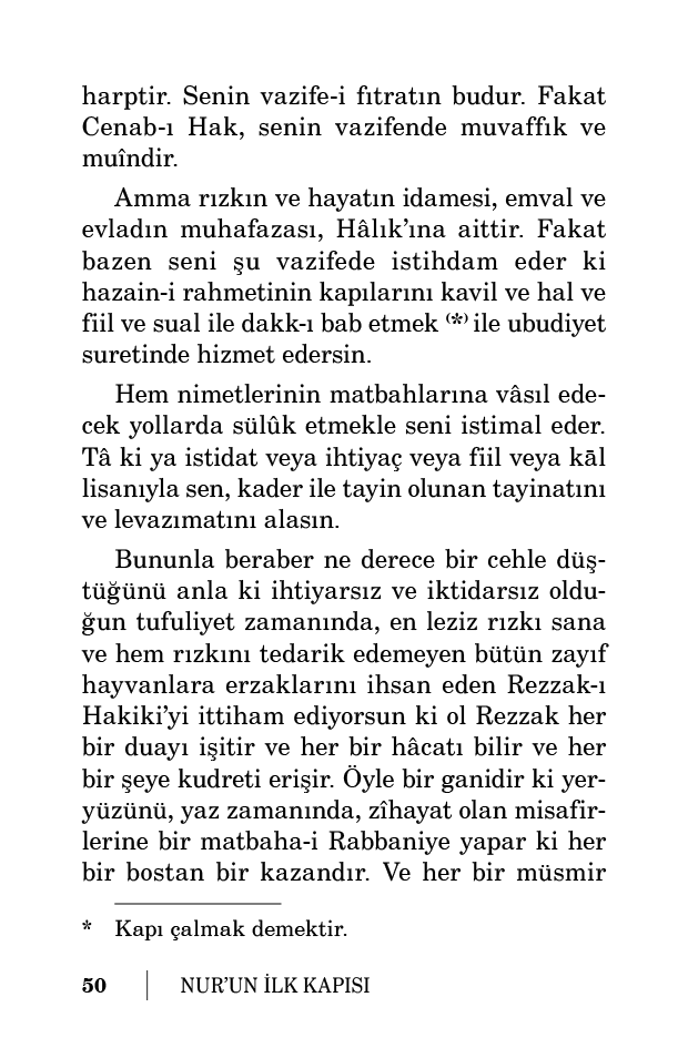 Madem iş böyledir. Vazife-i asliyeni yaptıktan sonra seni istimal ettiği vakit, onun hesabıyla çalış, onun namıyla başla. İzin verdiği dairede amel et. Eğer vazife-i asliyen olan ubudiyetle vazife-i ârıziye muaraza etseler sen vazifene bak. Ötekini, sahib-i hakiki olan Cenab-ı Hakk’a tefviz et ve