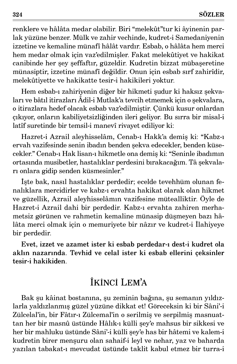 Evet, Hâlık-ı mevt ve hayat, şu destgâh-ı dünyada, hikmetiyle hayatı öyle bir kanun-u emriye-i mu’ciz-nüma ile idare ediyor ki o kanunu tatbik ve icra etmek; bütün kâinatı kabza-i tasarrufunda tutan bir zata mahsustur.
