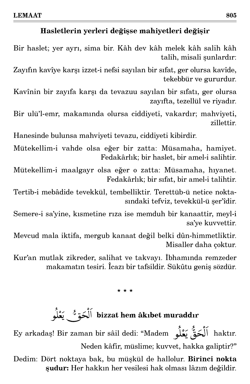 Kâmillerde, büyüklük mikyasıdır küçüklük. Nâkıslarda, küçüklük mizanıdır büyüklük…
