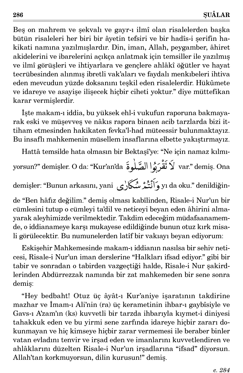 Şimdi bu şakirdin haklı olarak bu sözünü makam-ı iddia gördüğü halde “Said, etrafına fesat saçmış.” tabirini insafınıza ve vicdanınıza havale ediyorum.