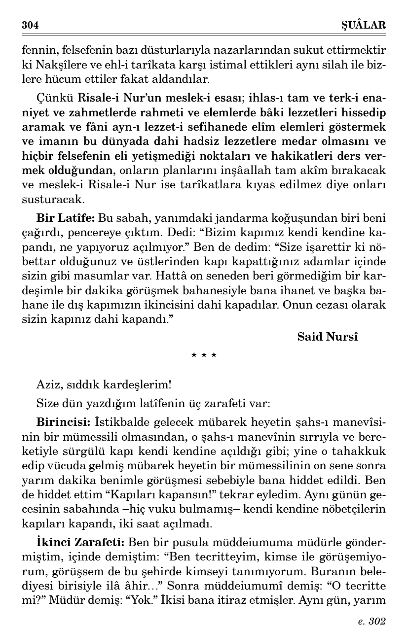Yeni hurufla yazdığınız iki Mesele, cidden tesirini gösterdi. Birinci, İkinci, Üçüncü Meseleleri de yazılsa çok iyi olur. Fakat Hüsrev ve Tahirî gibi kalemleri Kur’an’a ve Kur’an hattına mahsus ve memur olmalarından bana endişe verir. Başkalar yazsalar daha münasiptir.
