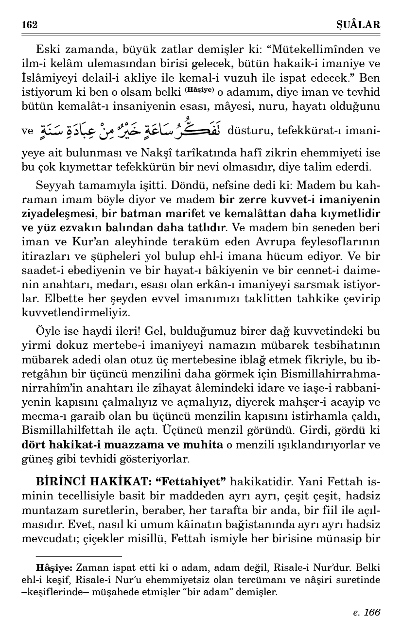 Ve Birinci Bab’da vücub-u vücuda şehadet eden on dokuz hakikat nasıl ki vücudlarıyla Hâlık’ın vücuduna delâlet ederler, öyle de ihatalarıyla da vahdete şehadet ederler.