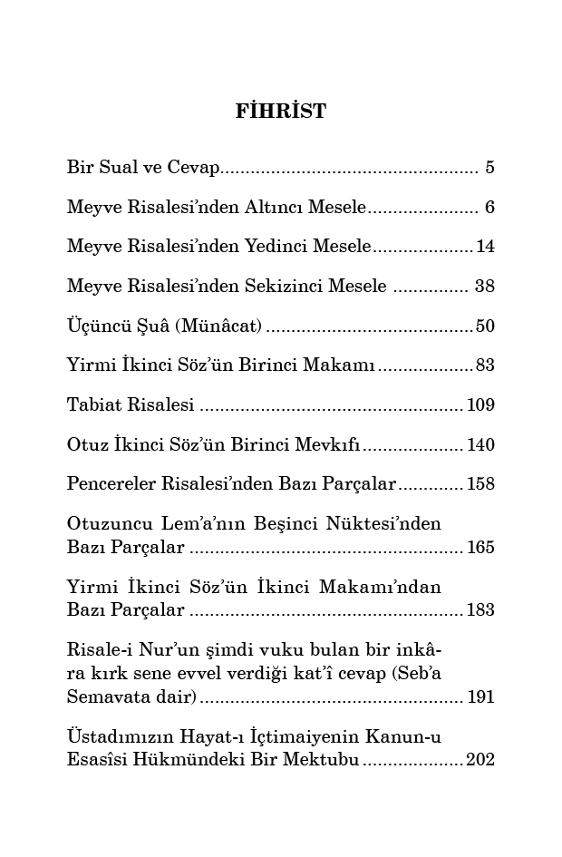 Meyve Risalesi’nden Yedinci Mesele........................................................................................ 14